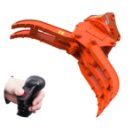 The operation of the Rotational Grasper, which enables simultaneous grappling operation and 360-degree rotation, can also be performed on a machine with single two-way hydraulic piping! Grappling operation (opening and closing the jaws) as well as 360-degree rotation is enabled. With a simple remote control operation, the angle of the jaws can be freely adjusted by rotating leftward or rightward.